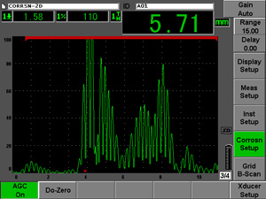 開發(fā)腐蝕模塊功能的目的是為進行基本腐蝕檢測的操作人員提供一種快速、簡便的解決方案。這個功能與多種業(yè)內(nèi)領(lǐng)先的Olympus雙晶探頭相兼容,其中包含D790探頭。選擇好適當?shù)奶筋^后,腐蝕模塊會對脈沖發(fā)生器/接收器的設(shè)置進行智能性調(diào)整,以保證得到超聲檢測的最佳效果。可以自動對測量閾限和增益進行調(diào)整,從而可使操作人員在極少動手調(diào)整設(shè)置的情況下立即得到厚度測量讀數(shù)。操作人員使用了這個功能后,就不再需要像以往一樣,為保持測量的穩(wěn)定性及避免幾何形狀發(fā)出的干擾性回波,而對閘門的起始、寬度和水平進行不斷地調(diào)整了。EPOCH 600腐蝕模塊功能還可以(簡便地)進行回波到回波測量。