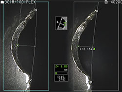 立體測量功能用于測量缺陷的尺寸或深度,比如檢查過程中發現的裂縫。重新設計的光學系統和強化技術極大地擴展了檢查面積。現在用戶可以在比傳統工業視頻內窺鏡大4倍的檢查區域中識別并測量距離為2倍遠的缺陷。立體測量功能通過準確的三角測量提供了圖像上指定點的3D空間信息,從而提供了準確的長度、深度和形狀測量。IPLEX NX專為提高準確性和畫質而設計、生產和微調,從而使檢查員可以檢測以前是要靠近才能測量的小裂縫或缺陷。